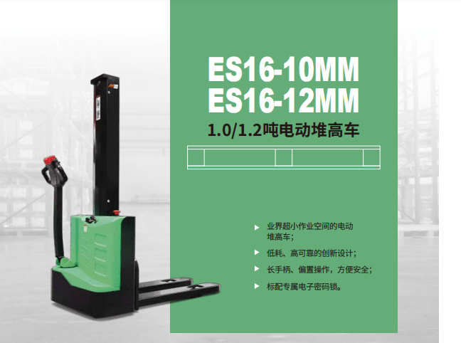 三菱叉車ES16-12MM 1.2噸電動堆高車車業界超小作業空間的電動堆高車;低耗、高可靠的創新設計;長手柄、偏置操作,方便安全;標配專屬電子密碼鎖。高性能,高可靠∶高強度結構設計;專用驅動、液壓系統,保證整車運行高可靠;低噪低故障液壓站,經過多層檢測測試的...
